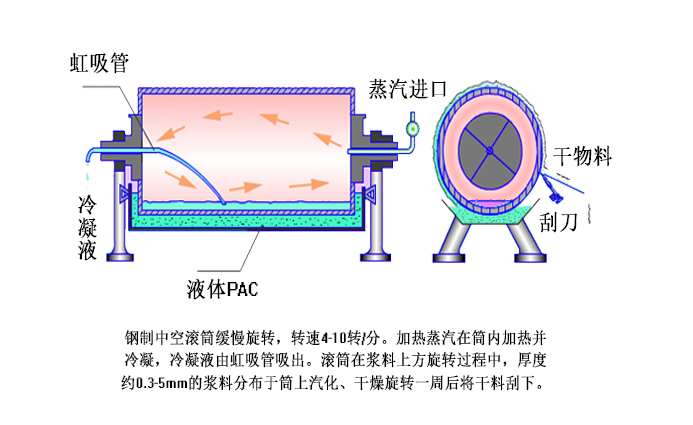 自然沉淀型聚合氯化鋁生產(chǎn)工藝:液態(tài)原料→自然沉降→滾筒干燥→成品